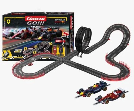 Detta är en bilbana för alla barn och vuxna som gillar när det går fort. De två sporbilarna flyger fram på banan, något som gör leken kittlande rolig för alla inblandade. I detta paket är bilarna dessutom licensierade replikor av riktiga racingbilar, en rolig detalj som vi tycker höjer upplevelsen.