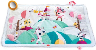 Den bjuder på aktiviteter som uppmuntrar både grovmotorik, kognitiv förmåga och barnets finmotorik. Med många olika färger och mycket att upptäcka är detta en lekmatta som lätt blir en favorit. Till skillnad från många andra produkter inom detta segment finns här mycket att dra i och att peta på. Det finns till och med en spegel som uppskattas av de flesta bebisar.