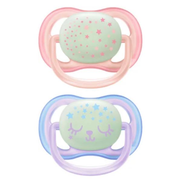 En häftig detalj med just denna napp är att dess stora knapp lyser lite grann när det är mörkt. Detta gör nappen enkel att lokalisera även när lampan är släckt. Medföljer gör även ett fodral som både kan användas till förvaring men även sterilisering av nappen.