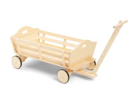 Denna skrinda är väldigt lättrullad, något som gör att vilket barn som helst kan dra den helt med egen kraft. De flesta delarna består av trä av hög kvalitet, något som gör att man kommer kunna behålla produkten under väldigt lång tid. Ett plus är också att skrindan är väldigt fin att titta på, den gör sig verkligen i barnens rum.